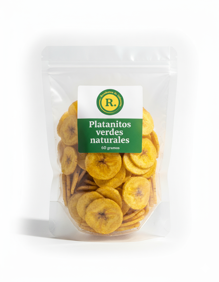 Seleccionamos cuidadosamente los plátanos verdes más frescos de cultivos locales en Colombia. Este ingrediente base, naturalmente rico en fibra y potasio, es el corazón de nuestros platanitos, garantizando un producto auténtico y beneficioso.
